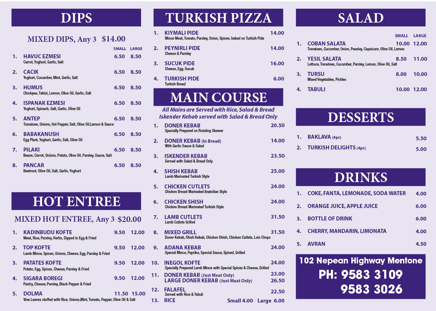 Mouth-watering Lamb & Chicken Dishes all served with rice & salad (excluding Iskender Kebab)